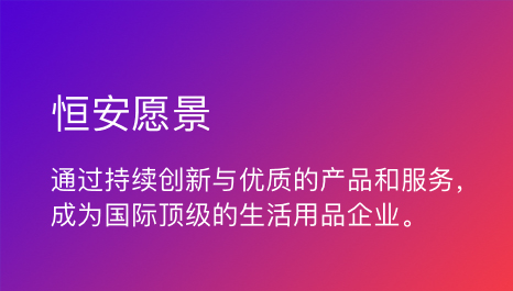 恒安堅持“誠信、拼搏、創(chuàng)新、奉獻(xiàn)”的精神,以“追求健康,你我一起成長”為使命,通過持續(xù)的創(chuàng)新與優(yōu)質(zhì)產(chǎn)品服務(wù),致力成為國際頂級的生活用品企業(yè)。