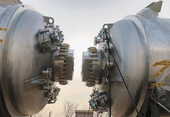 搪玻璃設備外包不銹鋼支承型式按操作要求采用懸掛支耳式或落地支腿式;搪玻璃設備外包不銹鋼內罐體按工藝需要采用不銹鋼(SUS304、SUS316L或SUS321)等材料制造,內表面鏡面拋光處理,可在線CIP清洗、SIP滅菌,符合規范要求。